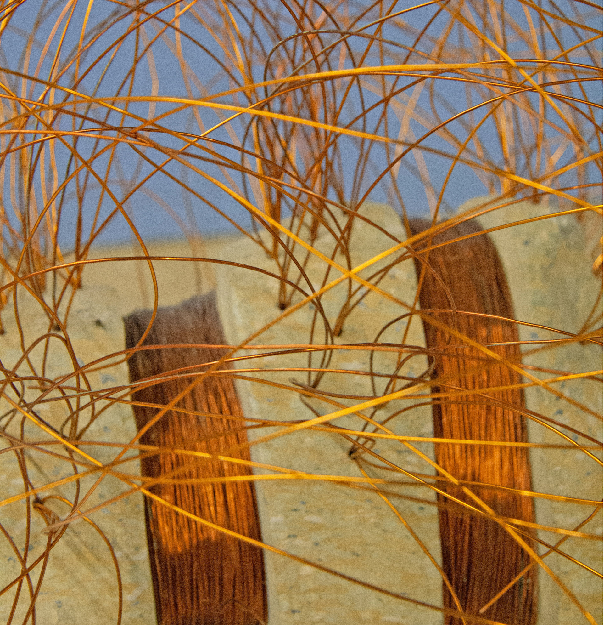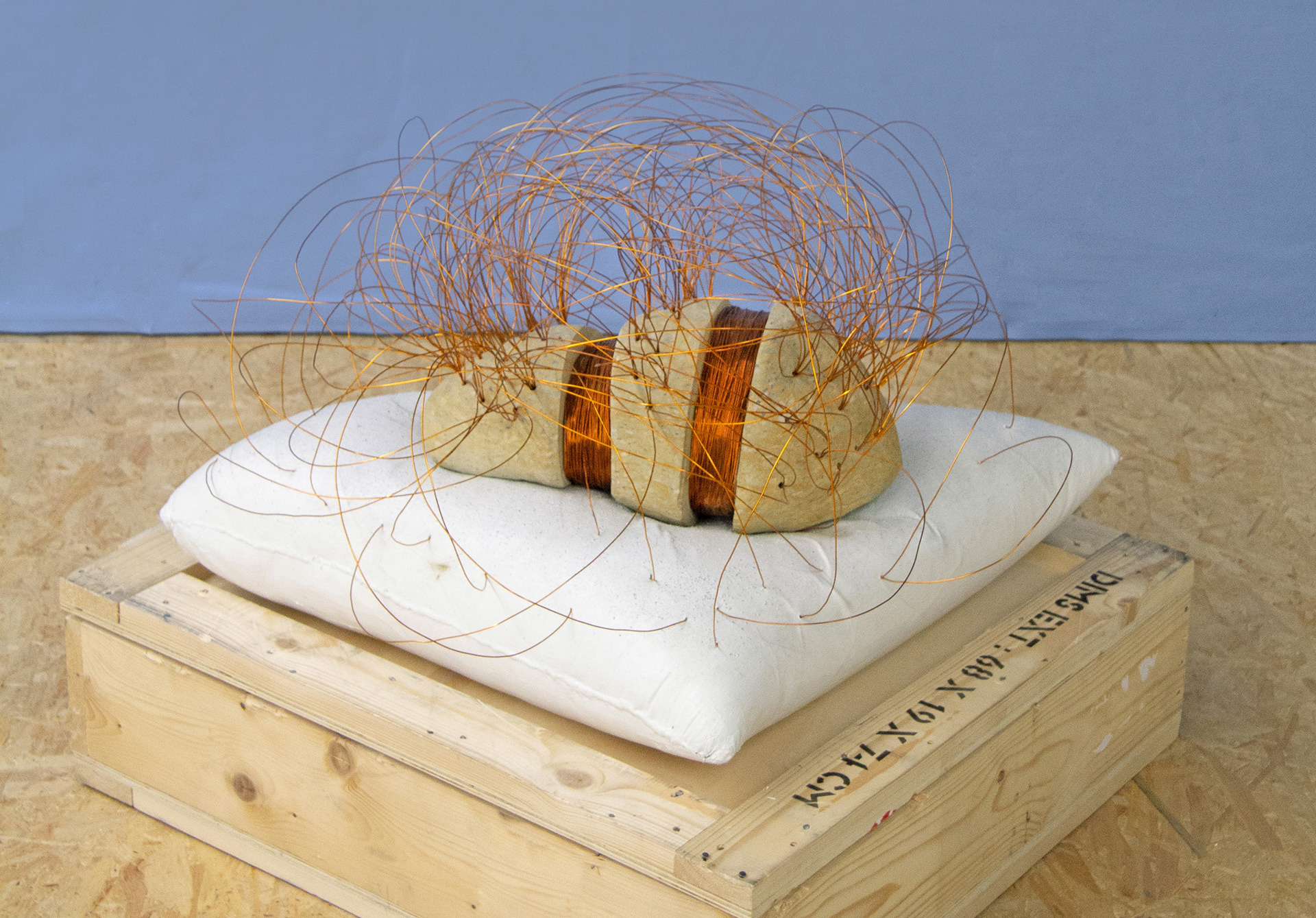 mixed media, sedimentary rock, copper wire cm 52 x 61 x 87, h. cm 45